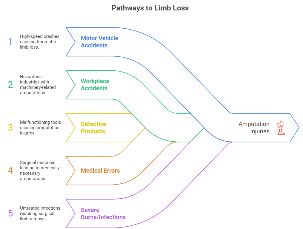 Serious crashes, especially those involving motorcycles, commercial trucks, or high-speed impacts, can result in traumatic limb loss. When another driver is at fault, a personal injury claim may cover both the injury and long-term recovery costs. - Workplace accidents